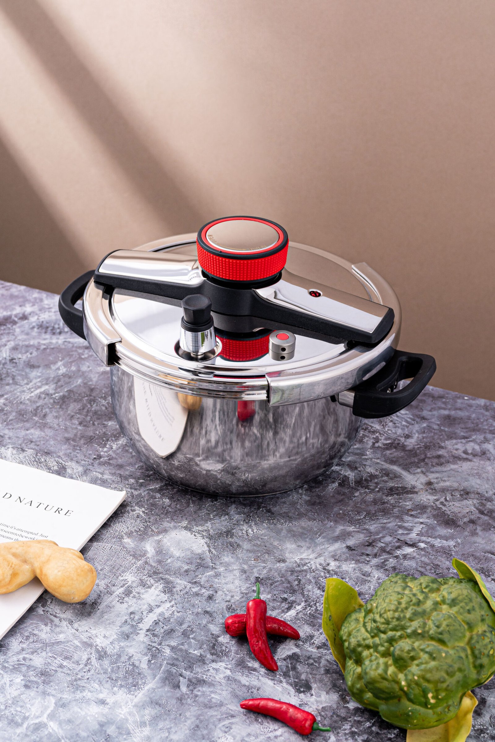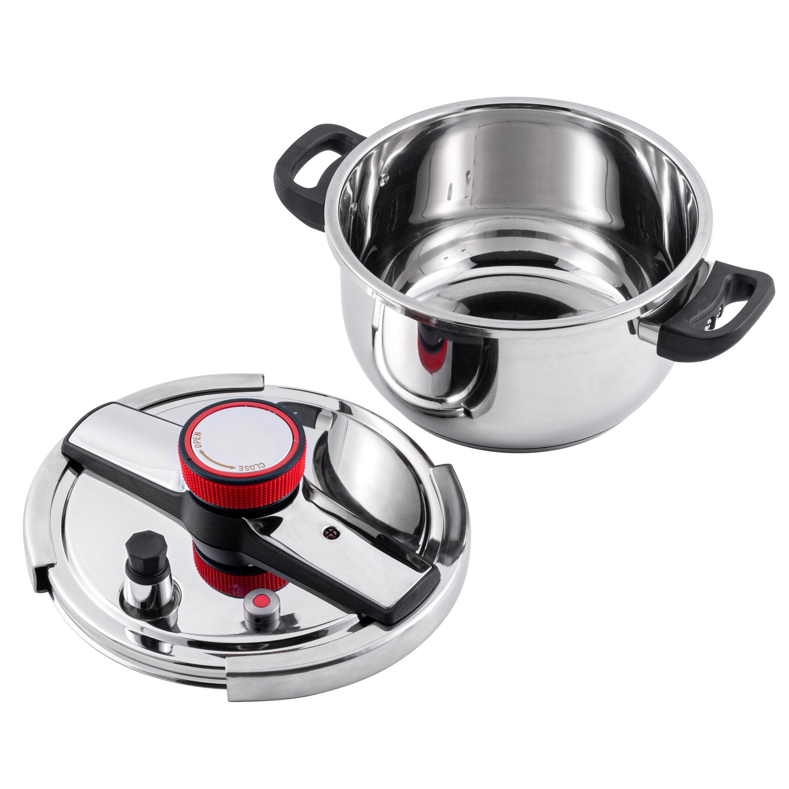 This knob-type explosion-proof pressure cooker is made from high-quality, food-grade stainless steel, offering superior durability, corrosion resistance, and long-lasting performance. Equipped with a secure knob and advanced explosion-proof safety mechanism, it ensures safe cooking under high pressure. The thick, sturdy base provides even heat distribution for efficient and consistent cooking, while the polished interior and exterior surfaces are easy to clean and hygienic. Designed for versatility, it is ideal for preparing stews, soups, rice, and a variety of dishes in home kitchens or professional culinary settings, combining safety, convenience, and reliability.